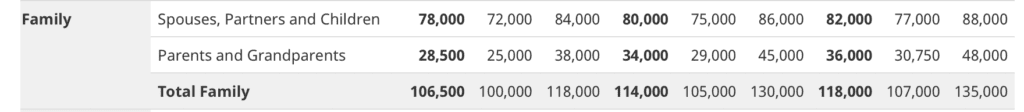 父母團聚移民目標人數 (Spouses, Partners and Children / Parents and Grandparents):