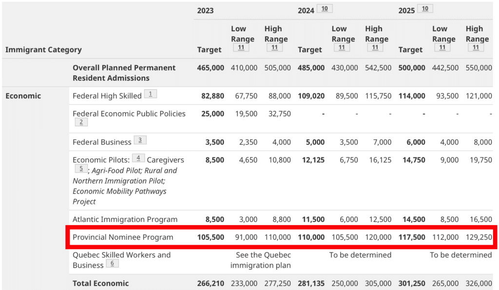 省提名計劃 (Provincial Nominee Program),是加拿大領先的經濟類移民招生計劃,目標每年遞增: