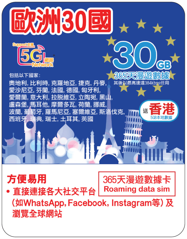 網店訂購:https://1worldsim.com/lucky2-esim-30euro-30gb