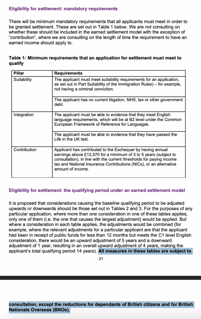 值得注意的是: 英國政府已確認,這些申請定居的「最低強制性要求」不需再經諮詢,即視為已確定。