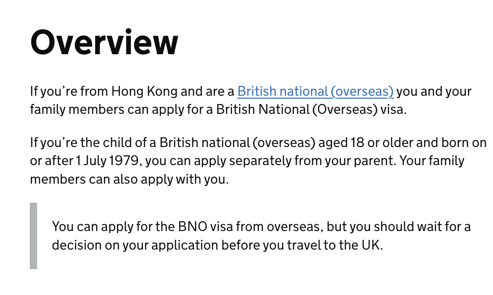 BNO Visa申請連結:https://www.gov.uk/british-national-overseas-bno-visa/apply-first-time-outside-uk